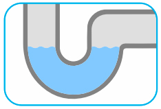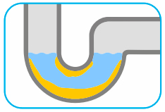 - Der er kun vand/flydende væsker i afløbet.